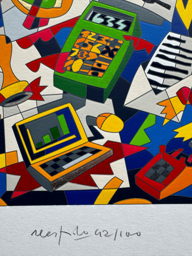 Con una carriera caratterizzata da una straordinaria versatilità artistica, Ugo Nespolo continua a sorprendere con opere che intrecciano vivacità e profondità. Il suo stile inconfondibile, energico e colorato, è immediatamente riconoscibile e riesce a catturare l'attenzione di chiunque lo osservi.