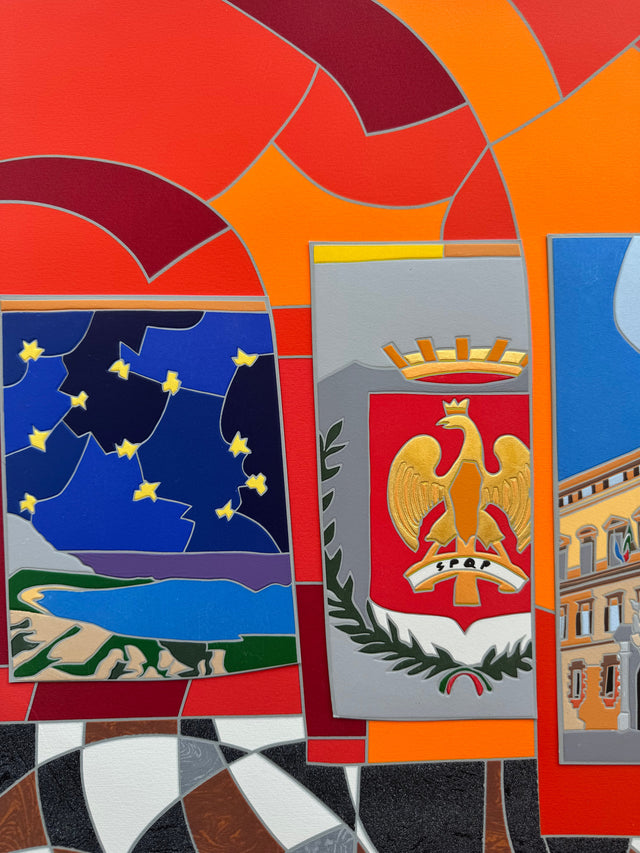 Conosciuto per il suo stile vibrante e giocoso, l'artista riesce a infondere in quest’opera una sintesi perfetta tra colore e forma che evoca l'energia e il fascino di una città ricca di storia e cultura. Gli elementi architettonici si fondono in un mosaico di tonalità vivaci, offrendo uno sguardo unico e contemporaneo su una realtà eterna.