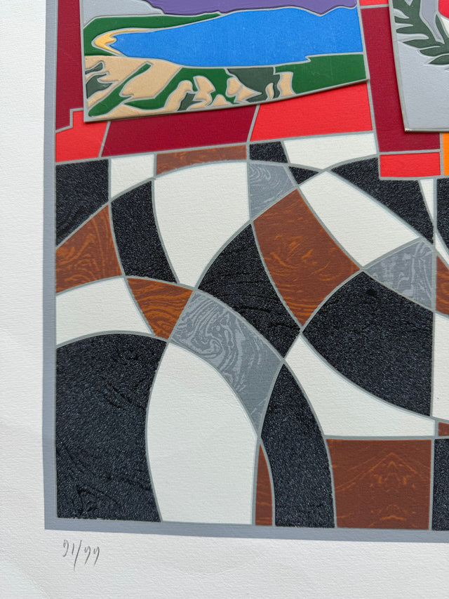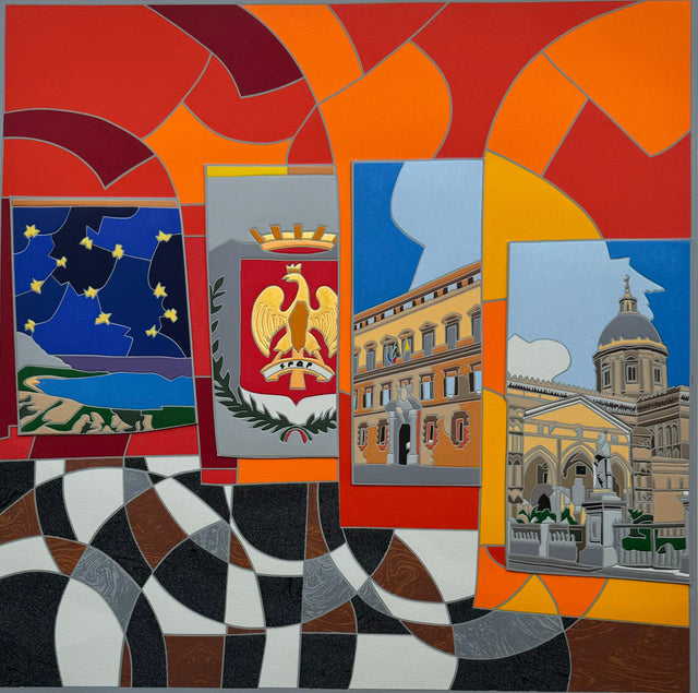 Nel panorama artistico italiano, Ugo Nespolo è noto per la sua capacità di combinare cultura pop e tradizione storica. La sua creatività vibrante si riflette in quest'opera, che è un omaggio alla ricchezza culturale e visiva di Palermo. I colori brillanti e le forme dinamiche catturano l'energia vivace della città, evocando un senso di movimento e vitalità. Nespolo usa una stratificazione di elementi per trasmettere un racconto visivo che è tanto accattivante quanto complesso. Le composizioni iconiche che emergono, con dettagli architettonici suggestivi, raccontano storie di una città intrecciata tra passato e presente. Ogni sguardo rivela nuovi dettagli, invitando l'osservatore a un viaggio immaginativo.