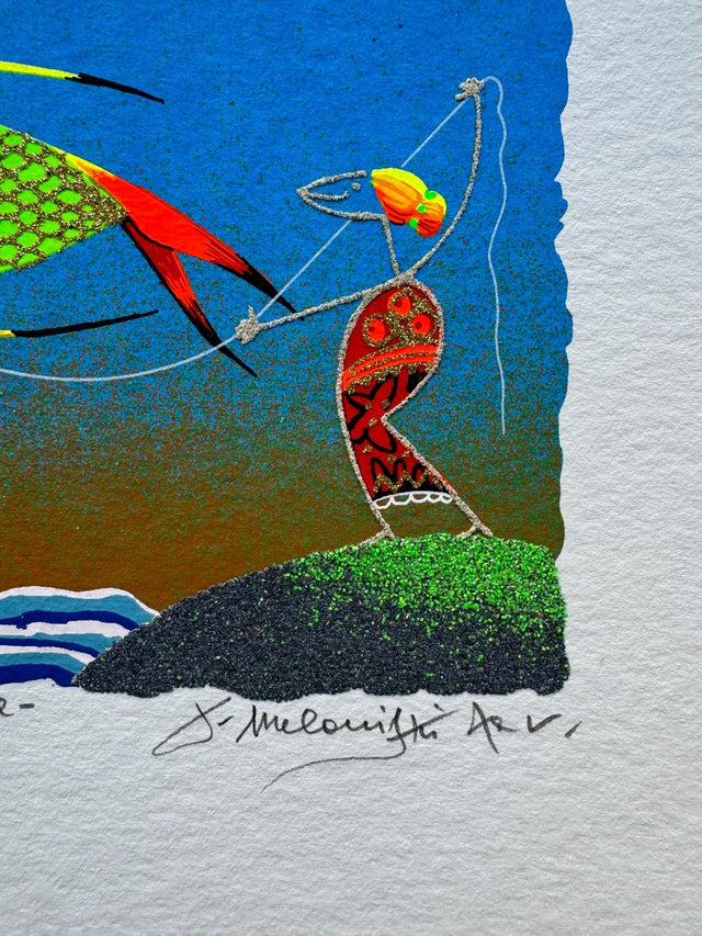 Opera serigrafica del Maestro Meloniski, interamente ritoccata a mano dall'artista. L'opera è realizzata su pregevole carta tedesca, serigrafia a più di 40 passaggi di colore. Dal vivo sono molto più riconoscibili gli interventi realizzati dagli artista.