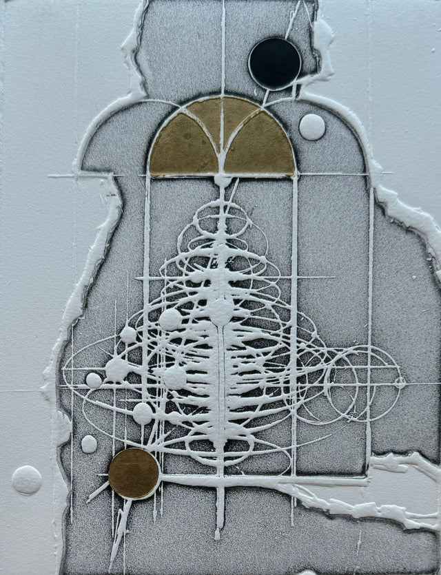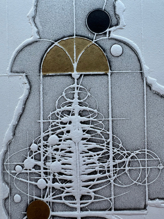 Qui troviamo un'opera che invita l'osservatore a un viaggio interiore. Linee sottili e curvature eleganti si sviluppano in un paesaggio astratto che cattura lo sguardo e stimola la curiosità. L'equilibrio tra direzioni e proporzioni suscita un senso di ordine e pace interiore, mentre i toni pacati rassicurano e conducono verso una riflessione profonda.
