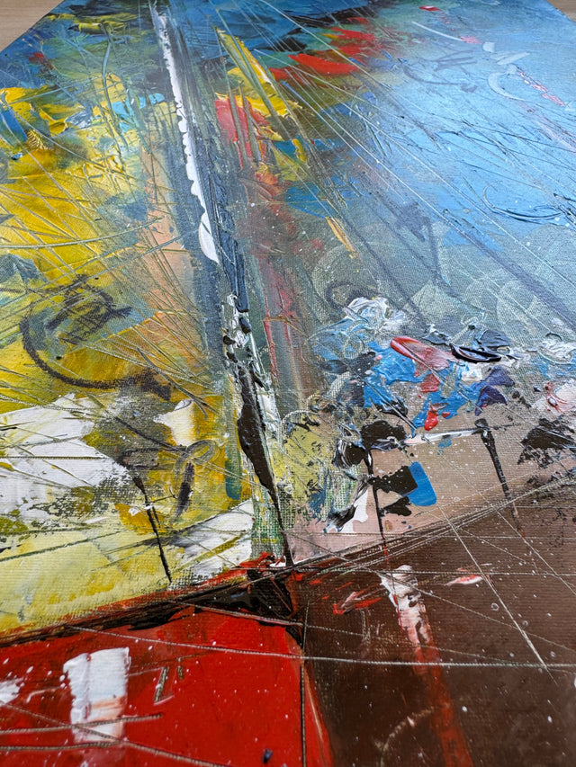 Bellissima opera Unica del Maestro Francesco Toraldo in cui è evidente l’influenza, nel suo stile, dell’Espressionismo astratto americano, in particolar modo di Pollock e dell’action painting.